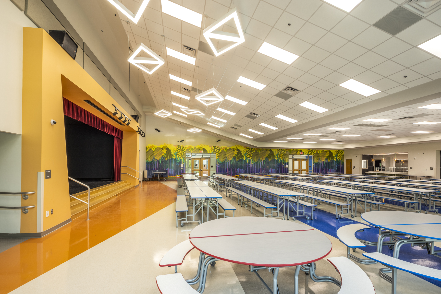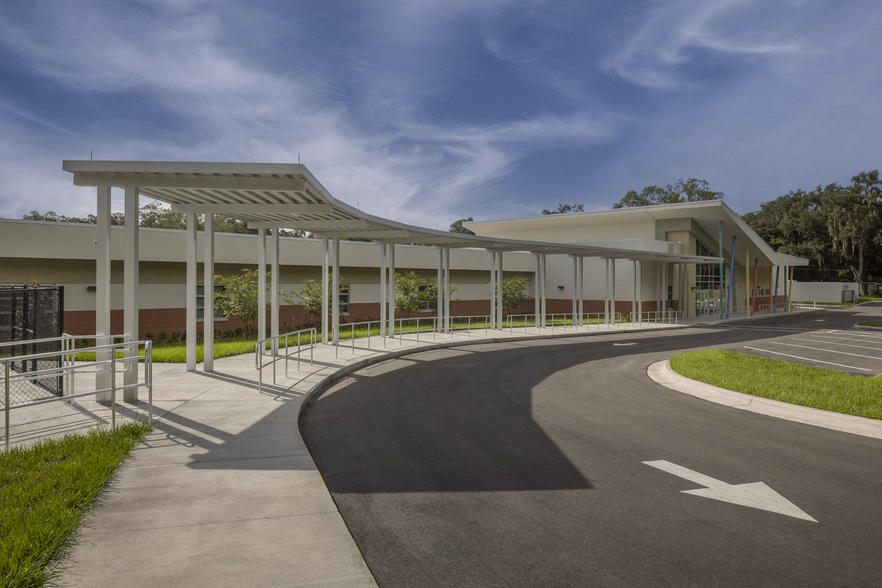 This project consisted of the new construction of a building to replace five buildings that were demolished. The new facility includes classrooms, a cafeteria / auditorium, a kitchen, and the main electrical room. Additional existing spaces were renovated, including the Administration Building, Media Center Building, and five classroom buildings. All of the campus buildings are connected through a brand new canopy system which is fed from new parking areas, a new parent drop off loop, and a new bus loop.