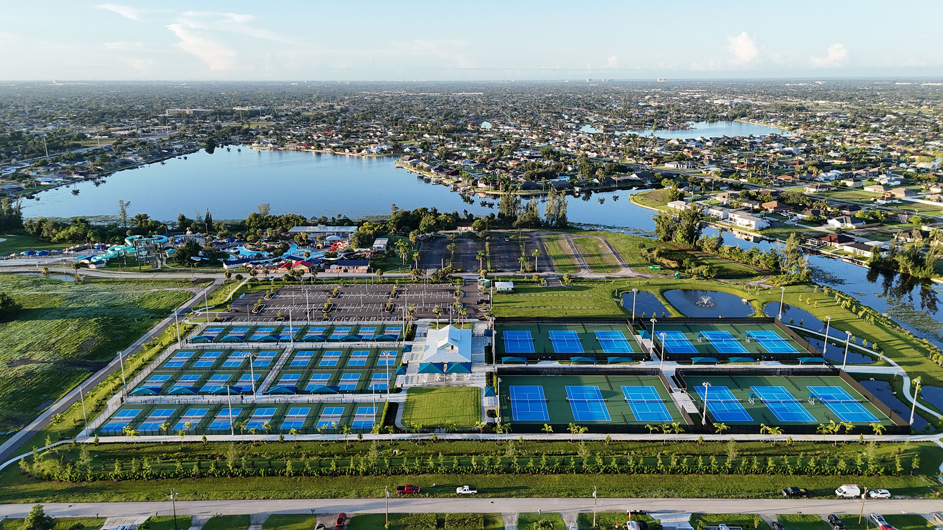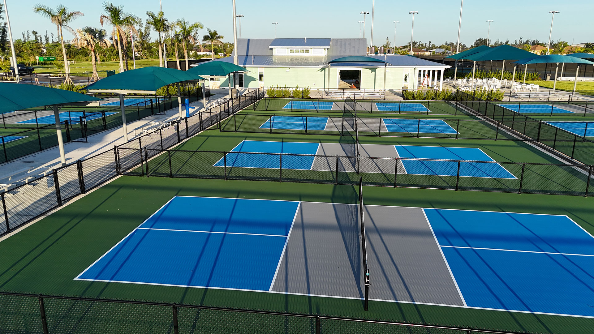 This project consists of the construction of a new racquet center and storage building for the Lake Kennedy Park community. The facility includes 12 tennis courts, 32 pickleball courts, and a new building. The building contains a pro shop, concessions, restrooms, staff offices, covered seating, and storage areas for both concessions and equipment. Additional project scope includes sitework, utilities, and parking.