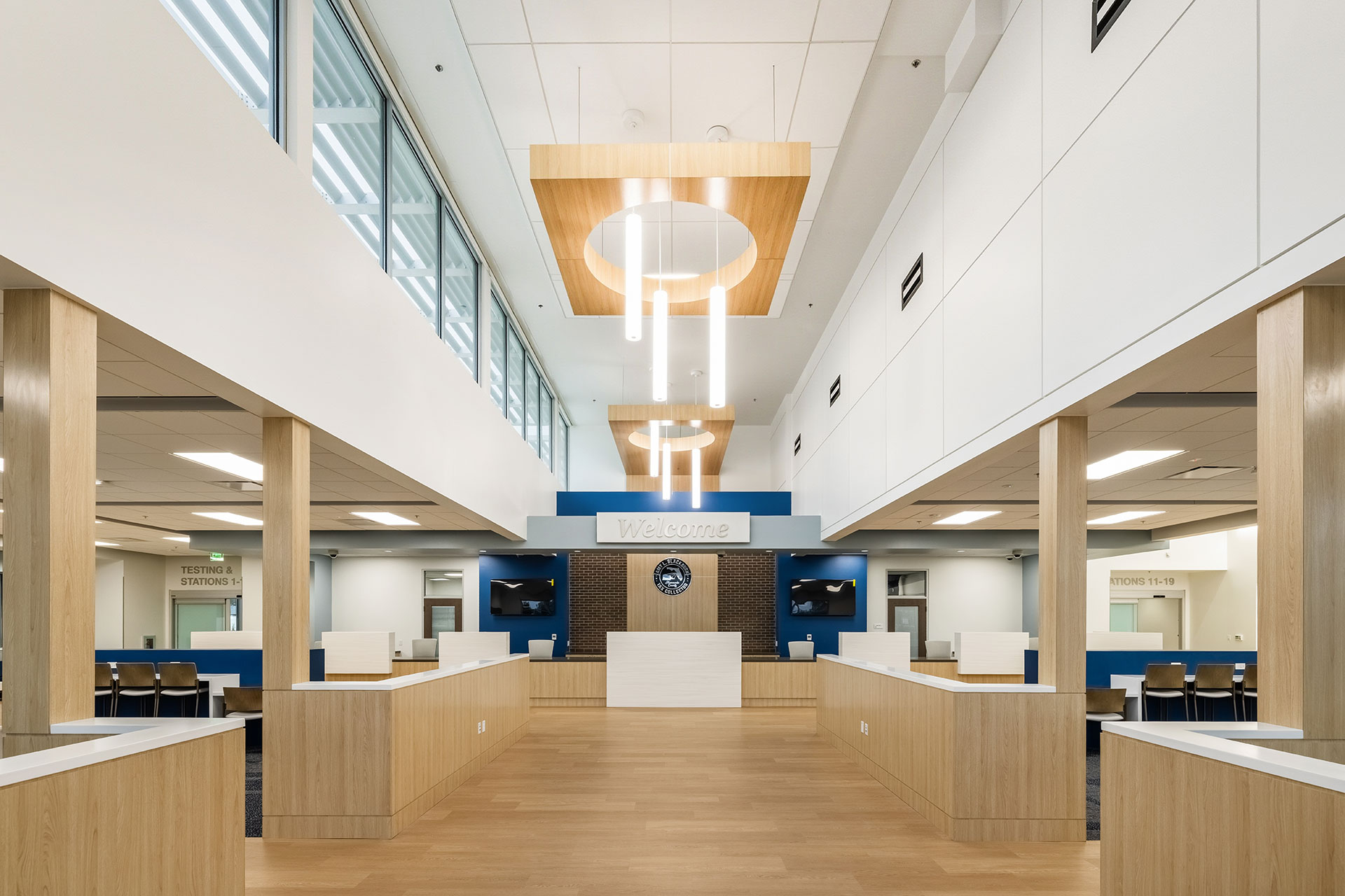 This project consists of the construction of the new Tax Collector’s Building which is approximately 16,000 square feet and includes covered exterior areas designated for vehicle identification number (VIN) inspections. Designed to improve operational efficiency and service delivery, the facility also features a certified driving course that meets all DMV requirements, allowing for the simultaneous administration of up to three driving tests. The site’s master plan includes provisions for future expansion, with infrastructure and grading in place to accommodate an additional building pad capable of supporting a structure of approximately 6,000-square-feet, along with the necessary parking facilities.