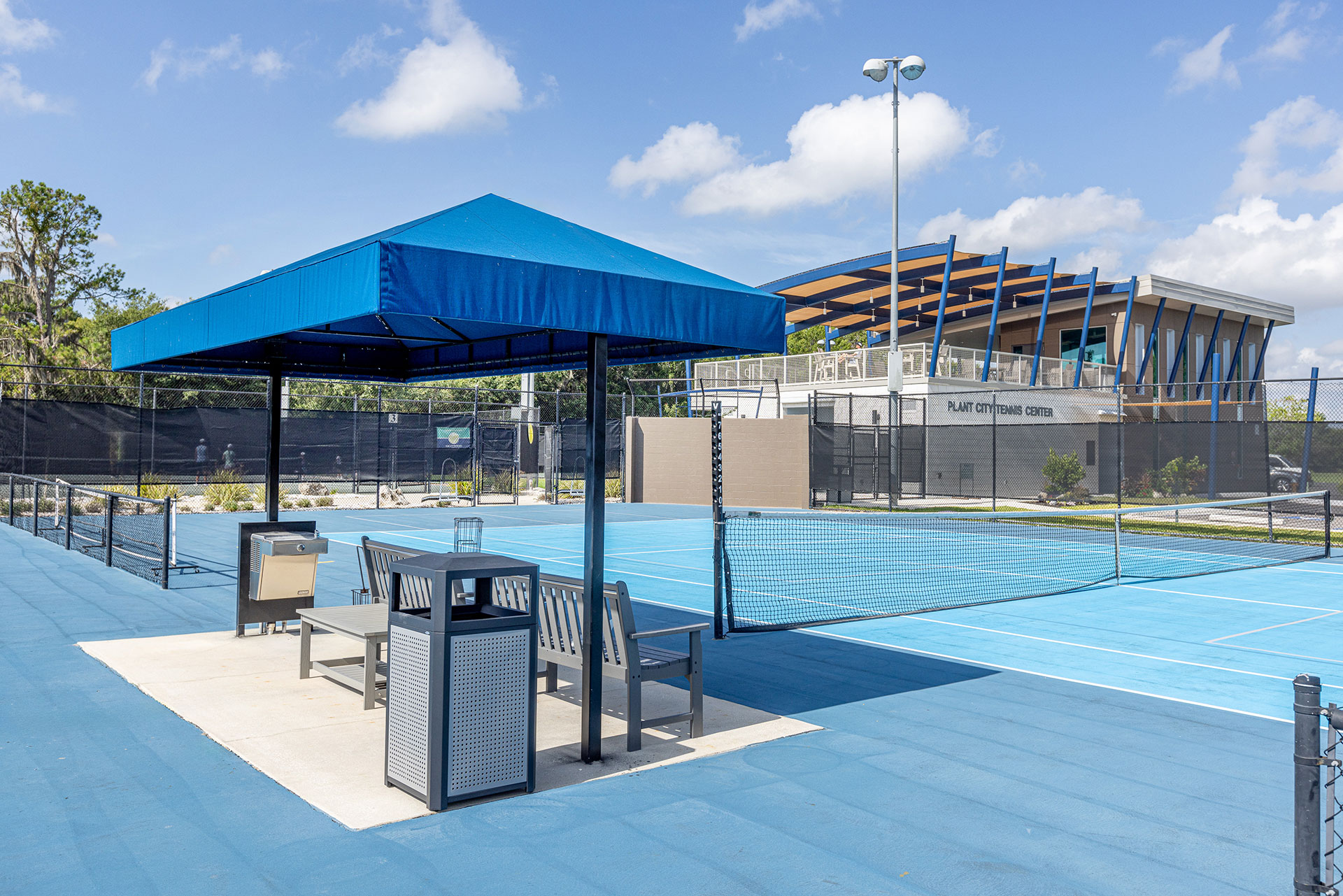This project consists of the construction a new tennis center and tournament management facility for the City of Plant City. In addition to eight tennis courts, the facility will include a lobby, expanded restrooms with showers for men and women players, a pro shop, food service area, and large observation decks. Additional work includes sitework and parking.